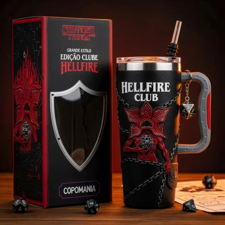 🎲 Copo Térmico Stranger Things – Hellfire Club + Pingente D20 1,15 L