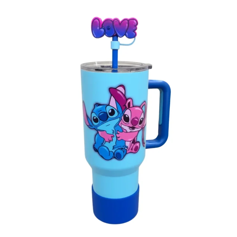 Copo Térmico Stitch & Angel com Canudo “LOVE” – 1,15L