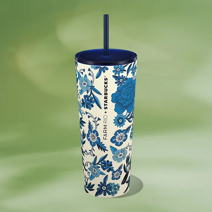 🌴 Copo Térmico FARM & Starbucks – Lenço Azulejo (710 ml)
