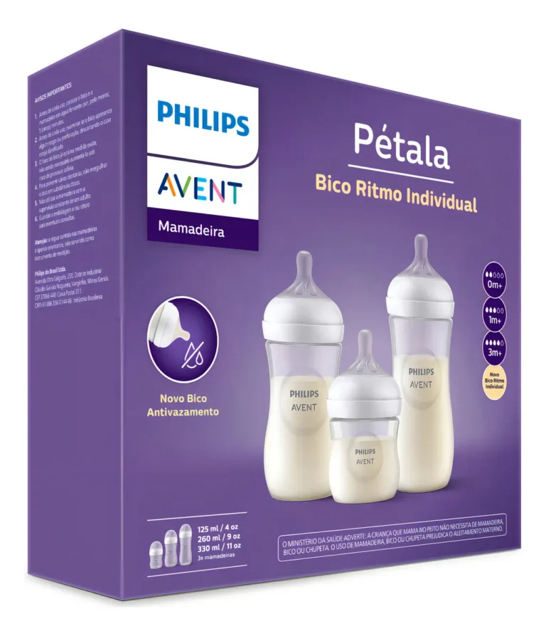 🍼 Kit Mamadeiras Philips Avent Pétala – 3 Unidades (125 ml + 260 ml + 330 ml)
