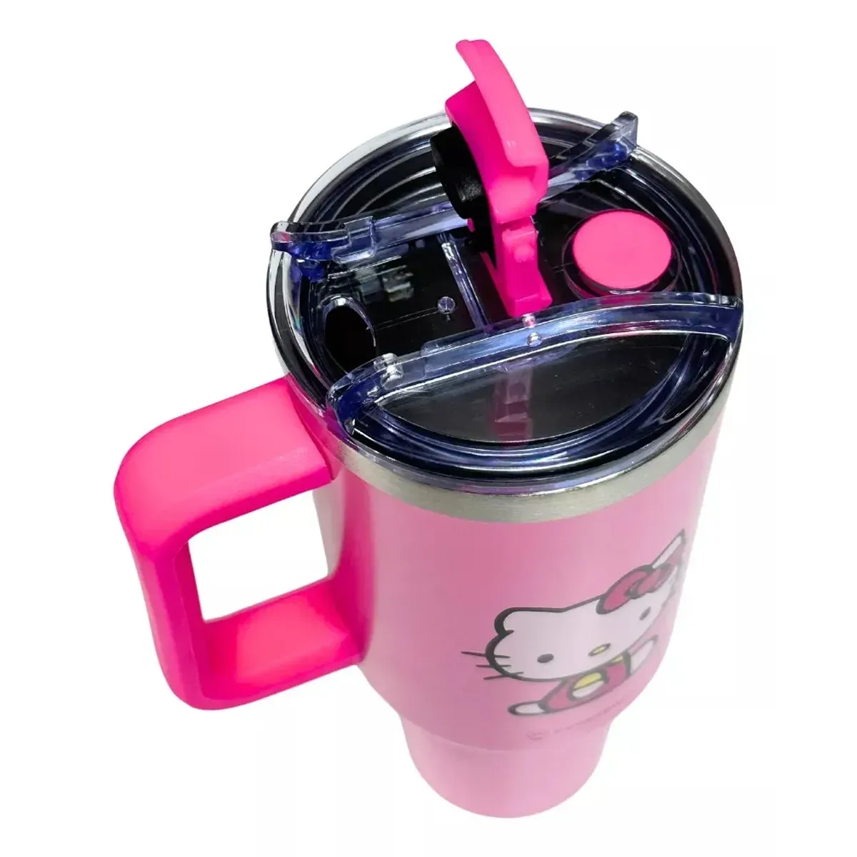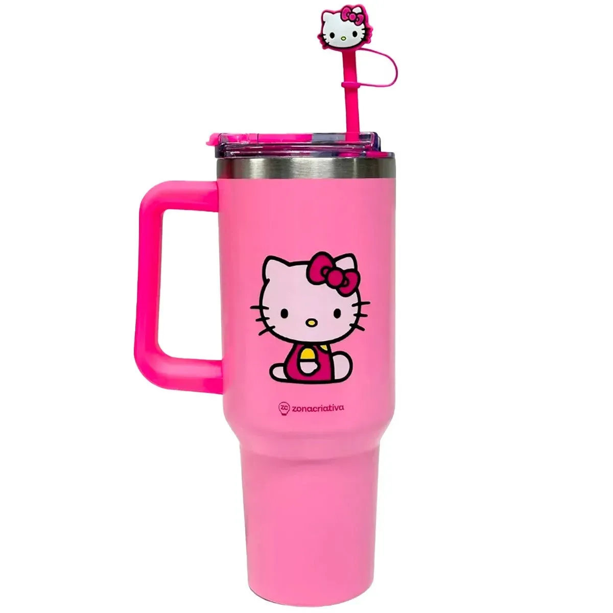 - Charme inconfundível: Estampa exclusiva da Hello Kitty e um pingente fofo no canudo.