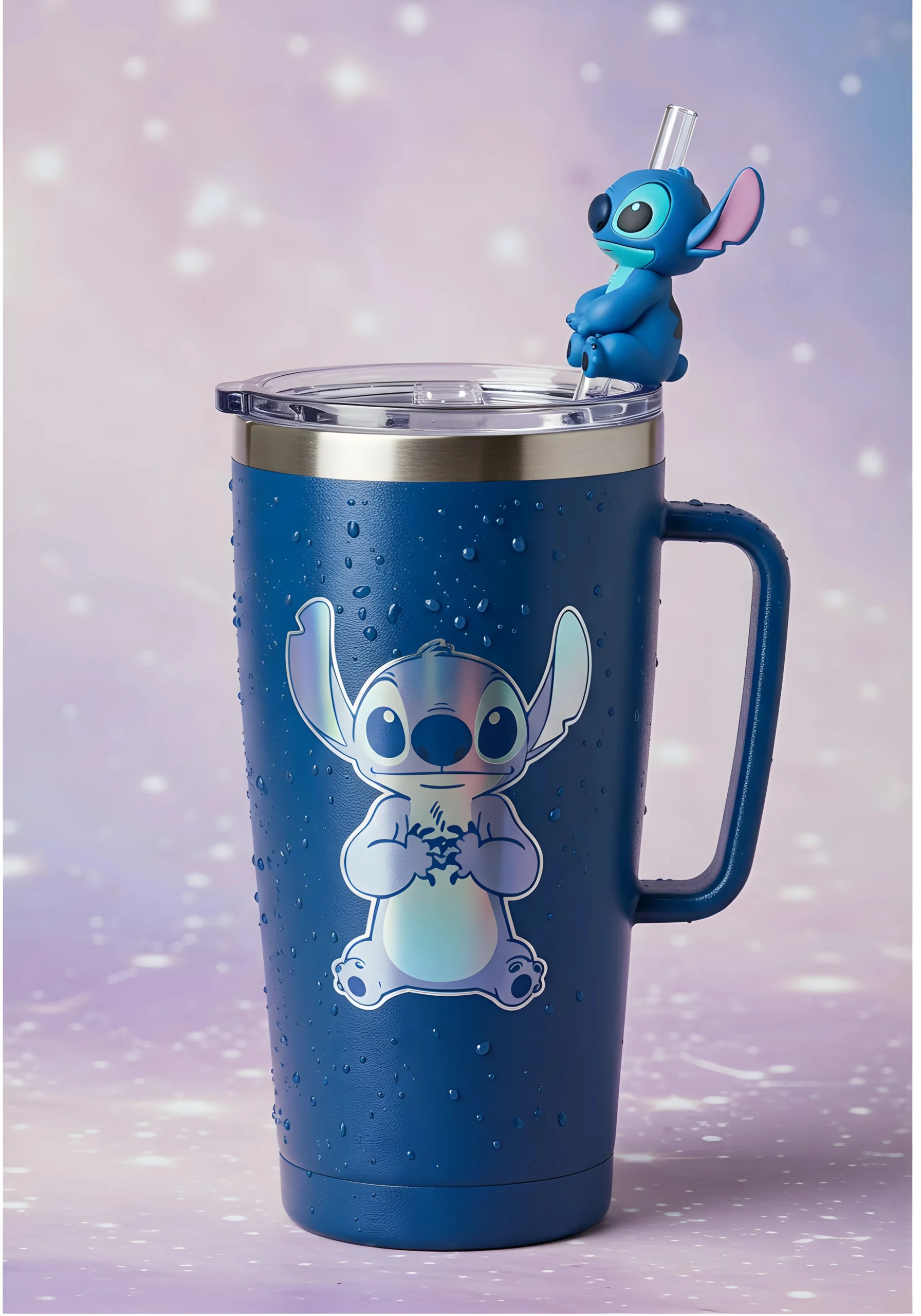 🌺 O Copo Térmico Stitch chegou para conquistar corações! Com o adorável alienígena azul estampado na frente e um pingente super fofo no canudo, esse copo é pura fofura e diversão. As cores vibrantes e o toque mágico fazem dele o companheiro ideal para quem ama o universo Disney. 💙