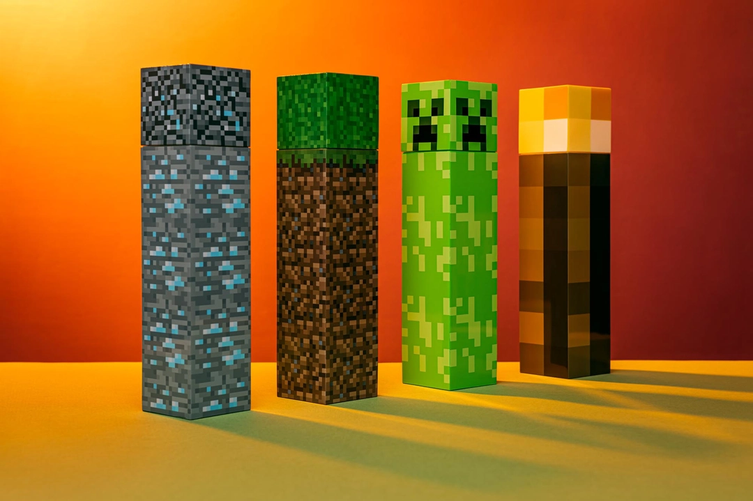 A Garrafa Minecraft Blocos 600 ml é a companheira perfeita para qualquer aventura. Com um design incrível que empilha vários blocos icônicos — TNT, grama, terra, minério, lava e bedrock — ela parece ter saído direto do jogo para suas mãos!