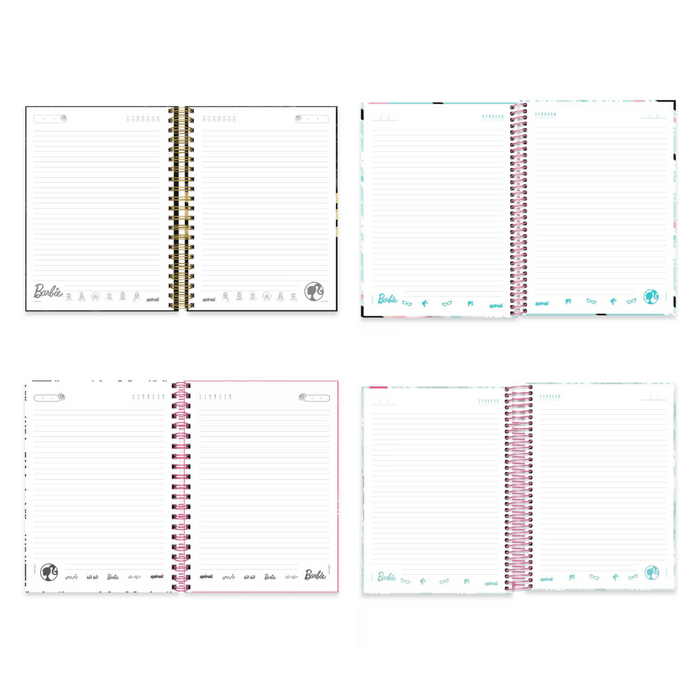 - Capas Brilhantes e Inspiradoras: Cada caderno é uma obra de arte, com cores vibrantes e imagens da Barbie que despertam a imaginação.