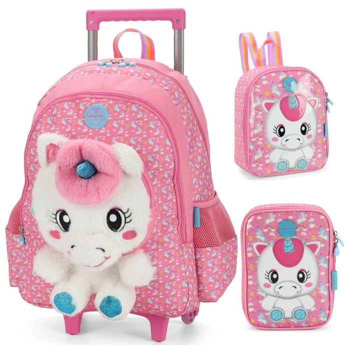 Conquiste a Escola com Estilo e Conforto! Apresentamos o KIT Mochilas Completo: Mochila de Rodinha, Lancheira e Estojo